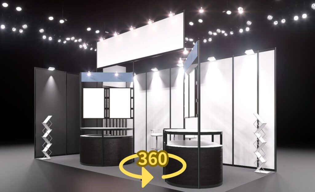 展示会ブースのパースや3D制作は、プラン段階から来場者動線やデザイン性を視覚的に確認できるため、企画・提案・社内共有に大きく役立ちます。特に、360度のレンダリングを活用すると、よりリアルに立体構成を把握できます。